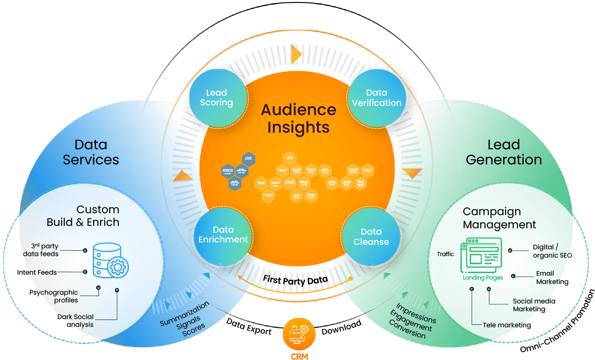 Multi-Format Content SyndicationMQL to BANT Lead DeliveryPsychographic and Sociographic InsightsEmail, Phone, and Social-Based Outreach